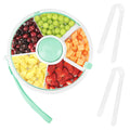 [【360 Degree Rotation】This rotating fruit storage box can be rotated 360 degrees which makes it easy to access and sort snacks and fruits and is very convenient and practical to use. 【Snack Container Material】Crafted from food-grade PP+ABS materials our snack box container ensures safety with its sturdy build smooth edgeswaterproof not easy to be damaged and has a long service life. 【Leak-Proof Seal】Designed with a sealed enclosure our snack organizer prevents spills and leaks keeping snacks and juices securely contained even when transported in a bag while the transparent cover provides easy visibility. 【Easy Carriage】Take your snacks anywhere with portable snack rotating container. Lightweight design and easy-to-carry feature offer effortless transportation without adding any extra weight or burden on your bag. 【Interactive Snack Time】With its unique rotating design and interactive buttons our snack spinner adds an element of fun to snack time encouraging to independently select and enjoy their snacks while developing fine motor skills. 【Versatile Storage】With a smartly crafted partition design snack rotating container prevents odor transfer and preserves the original taste of different snacks and dried fruits. The container is multifunctional and versatile enough to hold various types of food making it perfect for family gatherings and daily snacking.]