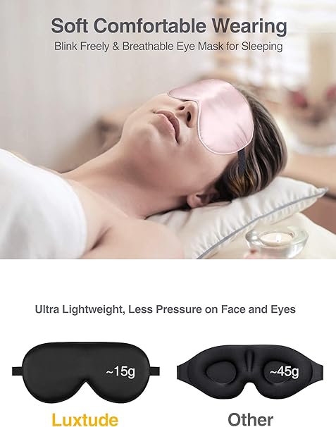 [【Upgraded Magnetic Design】: Luxtude sleep mask has magnets implanted on both sides of the strap and the silicone earplug sling has magnets implanted as well you can easily attach the earplugs tightly to the eye mask to prevent loss. 【Noise Reducing Earplugs】: Our sleep eye mask come with a pair of silicone earplugs soft and easy to stuff into your ears which can effectively reduce environmental noise and help you fall asleep better during the journey. 【100% Light Blocking】: The 3D sleep mask features heightened hollow nose bridge design that fits perfectly with all types of noses blocking out all light and giving you a completely dark sleeping environment. "【3D Contoured】: Deepening at the eye sockets of this eye mask leaves enough space for your eyes effectively reducing the friction between eyelids and eyelashes wont cause any stress or discomfort to your eyes." 【Adjustable Elastic Strap】: Designed with adjustable strap and buckle our sleeping mask can fit different head size and will not tangle your hair which is flexible and durable. 【Breathable & Comfortable】: Our sleep mask for women and men uses premium memory foam more breathable lightweight and skin-friendly ideal sleeping companion for travel or lunch break in the office.]