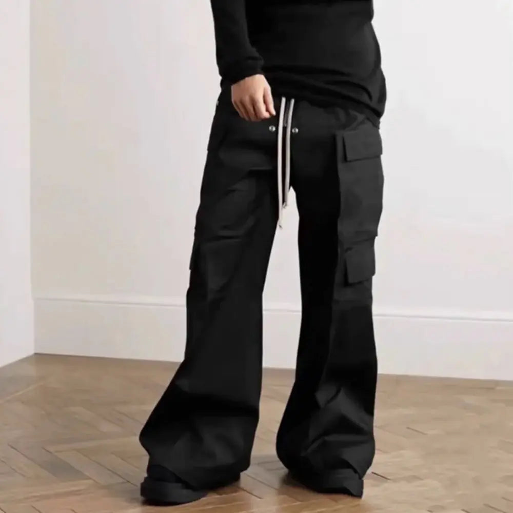 Discover the ultimate in casual style with our Ro Style Wide Leg Drawstring Black Cargo Pants. Perfect for anyone seeking comfort without sacrificing fashion, these unisex overalls are the epitome of laid-back streetwear.