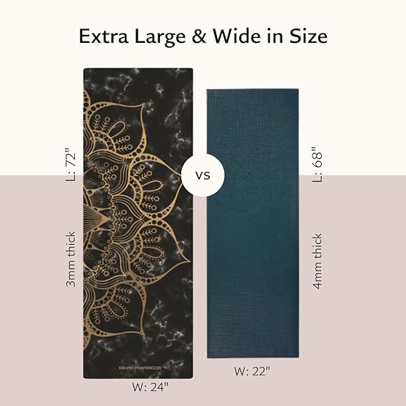 [MAXIMUM COMFORT: Transform your perception of a charming yoga or pilates mat! Experience ample joint support with a thick cushion coupled with vibrant designs and generous dimensions of 72 inches by 24 inches by 6mm (all while remaining lightweight at 1.8 lbs). You might even consider saying goodbye to your other bulky yoga mats. For women seeking fitness mats for on-the-go workouts a convenient cotton carrying strap is included. "GREAT GRIP AND NON SLIP: Indulge in the velvety luxury guilt-free; not only is this yoga mat non-slip its specifically engineered for hot yoga sessions. Our sticky mats provide even better grip as you perspire! Featuring an ultra-micro-suede top layer and a high-density lightweight TPE bottom layer this mat offers consistently thick support for your home workouts - extra thickness included!" MOTIVATION THAT ENDURES (AND DOESN\T TEAR!): Our deluxe vegan suede yoga mat strikes the perfect balance between durability reliability and the ideal texture of a "thick mat" you desire. Non-slip mats don\t come better than this! Built to last it\s suitable for home gyms fitness classes and beyond—free from worries about rips or stretching. PREMIUM SUSTAINABLE MATERIAL: More expensive but worth it. TPE is the latest technological improvement to the traditional yoga mats. They are truly healthy EASY TO MAINTAIN WHILE RETAINING VIBRANCY: Thick yoga mats often pose cleaning challenges but not this one! Simply use a gentle bleach-free household cleaner or create your own aromatic DIY mat cleaning spray to wipe down this wide yoga mat. Designed to be fashionable fitness accessories its durable suede ensures colors stay vibrant without rubbing off or fading.]